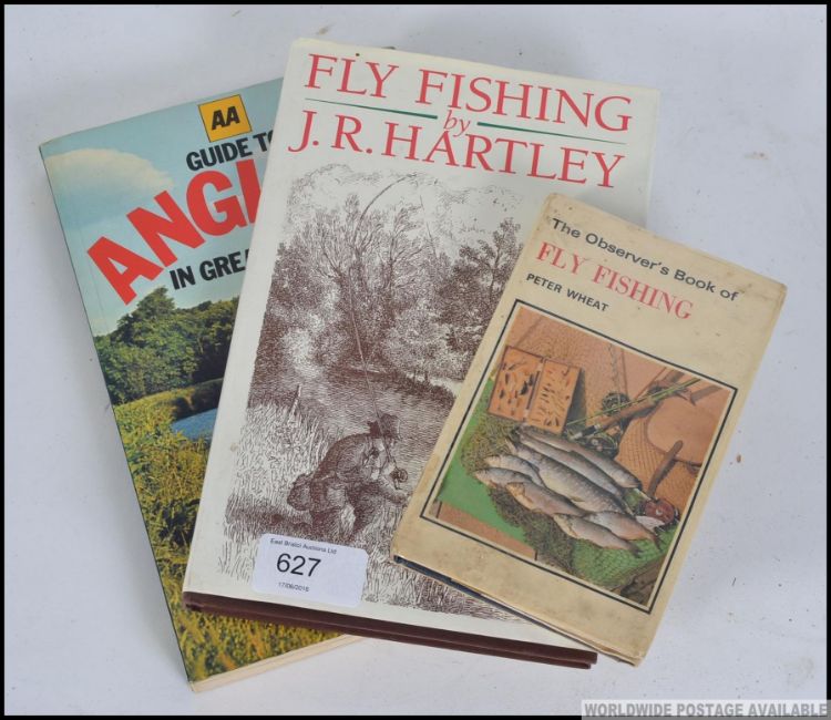 A signed copy of Fly Fishing by J R Hartley along with an Observers book on fishing along with another