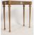 A stunning 19th / 20th century gilt console table, being raised on column legs, with a deep frieze having acanthus carved decoration and applied enamel panels of classical scenes. Measures:80cm x 82cm x 46cm.
