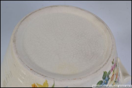 A pair of fabulous Continental pottery twin handled milk pails, one decorated with printed country scene image signed J C Van Hunnik, the other with floral spray both with notation for ' Cream ' Measures: 20cm H.