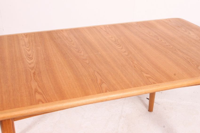 A 20th century good quality ash refectory retro dining table raised on turned and tapered legs with rectangular top having well grained ash table top. Measures: 72cm x 150cm x 54cm.