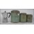 A set of vintage enamel graduating storage jars along with an Italian stove top percolator. Measures: 21cm H.