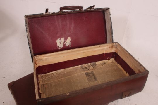 A stack of vintage suitcases to include varying sizes and styles all dating from the early 20th century
