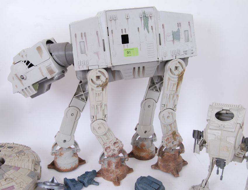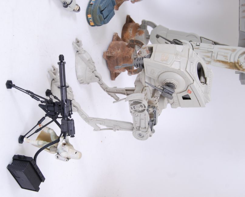 STAR WARS; A collection of vintage and 1990's release Star Wars toys, action figures and vehicles. To include a battle damage ATAT, vintage Scout Walkers, 5x vintage action figures including a Last 17 Star Wars ' Stormtrooper Luke ' and others.