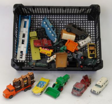 DIECAST: A collection of assorted loose vintage diecast model cars to include Corgi, Dinky, Britains, Matchbox, Superfast etc. Various.