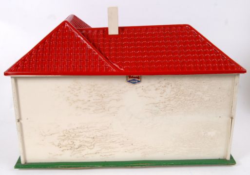 DOLLS HOUSE: A charming vintage Triang Toys dolls house - red plastic roof, with opening front panels. Triang lozenge to verso. 65cm long.