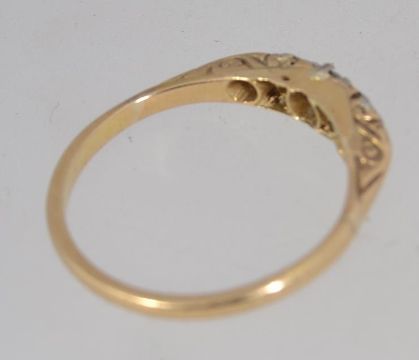 An 18ct gold ring set with 5 diamonds in a gypsy settings approx 20pts. Marked 18ct Plat. Weight 2.1g. Size N.