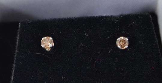 A pair of 14ct white gold champagne diamond stud earrings