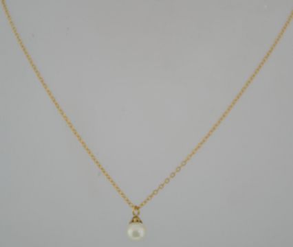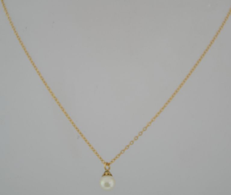 A hallmarked 9ct gold pearl drop pendant necklace with single pearl drop. Marked 9ct. Measures chain 18 inches
