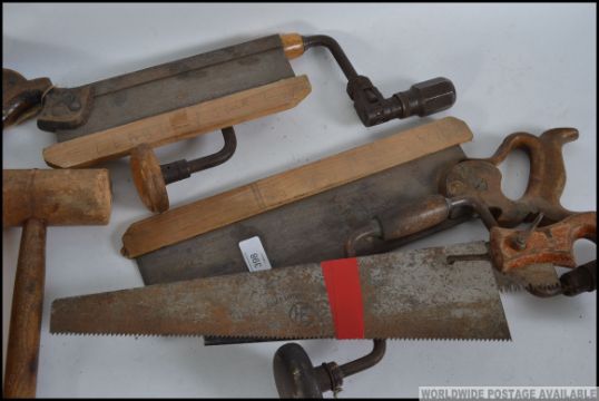 A collection of vintage woodworking tools to include Braces, Mitre Saws, miniature planes etc, please see images