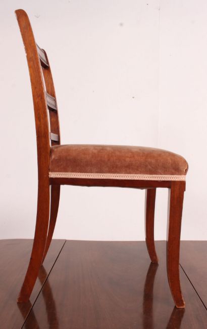 A set of 4 Edwardian mahogany dining chairs together with a 19th century Georgian mahogany pad foot / gate leg dining table. Measures: 73cm x 150cm x 107cm.