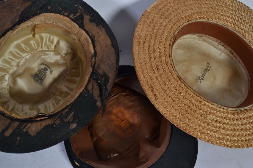 A 20th Century London makers gents bowlers hat along with a Ridgmons straw hat and a stationmaster's hat
