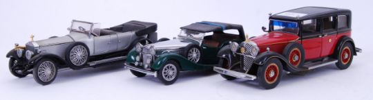 FRANKLIN MINT: A collection of 3x original Franklin Mint made 1:24 scale ' Precision Diecast ' model classic cars - 1925 Rolls Royce, 1938 Alvis and a 1935 Mercedes Benz. Unboxed. Two with original certificates. Fine detailed models.