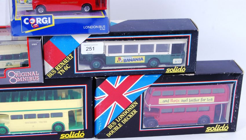 BUSES: A collection of 7x diecast model buses - various makes and models to include Corgi Original Omnibus, Solido, EFE etc. All within original boxes.