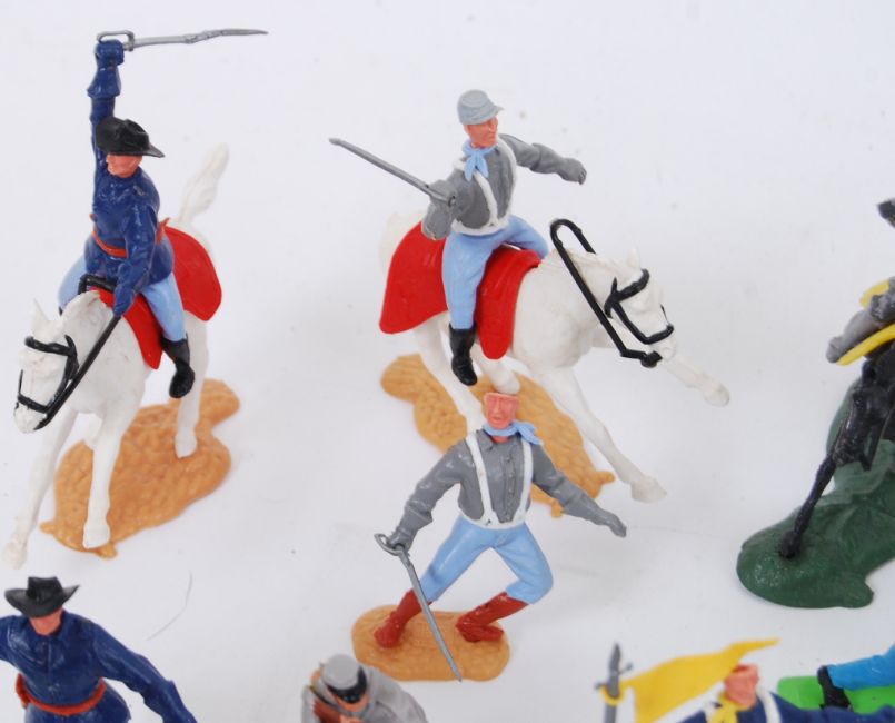 SOLDIERS: A good collection of US Cavalry / Infantry Timpo, Britains, and Deetail (some other) plastic model figures. 60+NOTE: From an amazing private collection of vintage Britains, Timpo and similar plastic figures and accessories. Most figures are in good condition, some with light playwear or appear to be unused. Please satisfy yourselves as to condition of individual lots, as this is for guide only.