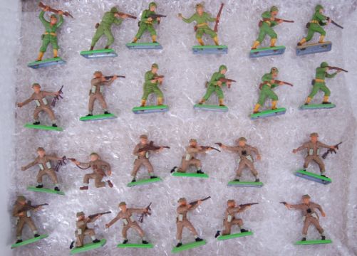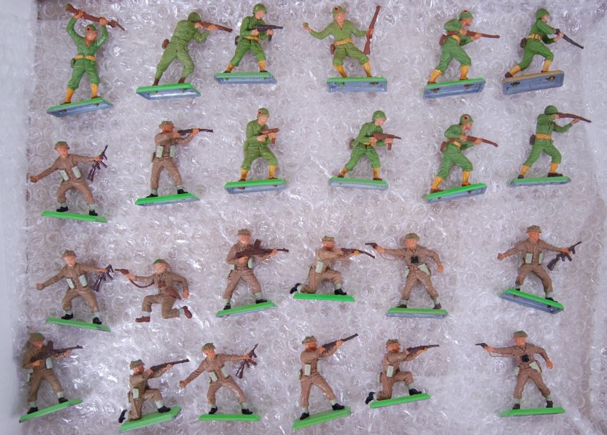 BRITAINS: A collection of 24x vintage Britains Deetail mounted plastic and metal based soldiers / figures. Various stances and poses.