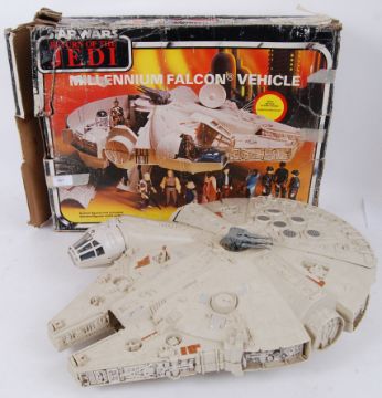 STAR WARS: An original vintage Star Wars Return Of The Jedi issued Millennium Falcon action figure playset. Made by Clipper / General Mills. Within the original box. Bi-logo.