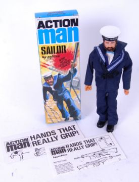 ACTION MAN: An original vintage 1964 Palitoy Action Man ' Sailor ' 'With Gripping Hands!' action figure doll. Mint box. Doll appears very near mint (minor wear to front of beard, otherwise good). With correct accessories and clothing. With paperwork. Unchecked for completeness.