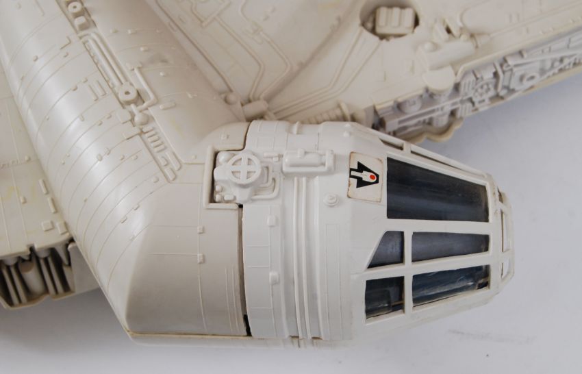 MILLENNIUM FALCON: A SUPERB example of a vintage Kenner made Empire Strikes Back Star Wars Millennium Falcon. In a very good condition original box. The Falcon is still very white, with very little to no discolouration. Comes 100% complete (just missing the Jedi training ball) with all small parts and accessories. (from the same collection as lot 550)