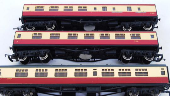 00 GAUGE: A collection of 8x assorted vintage 00 gauge railway trainset carriages, various makes and models to include Hornby, Bachmann and 2x carriages fitted with working lights.