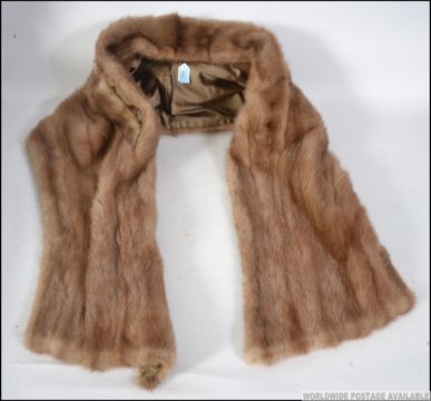 A quality long and wide fully lined mink? stole, monogrammed to lining