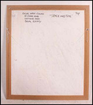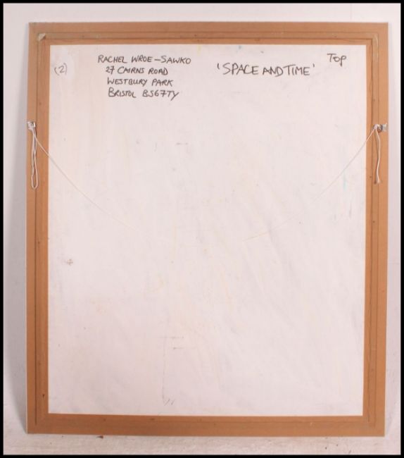 Rachel Wroe Sawko, 20th century. Oil and gouache abstract painting ' Space & Time Beginning '. Framed.