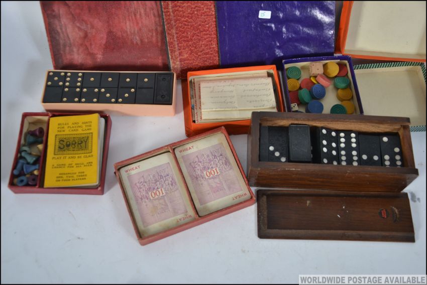 A good collection of vintage games to include Chad Valley dominos, , Who Goes Where, Lugo, Sorry, Pit, Dominos etc