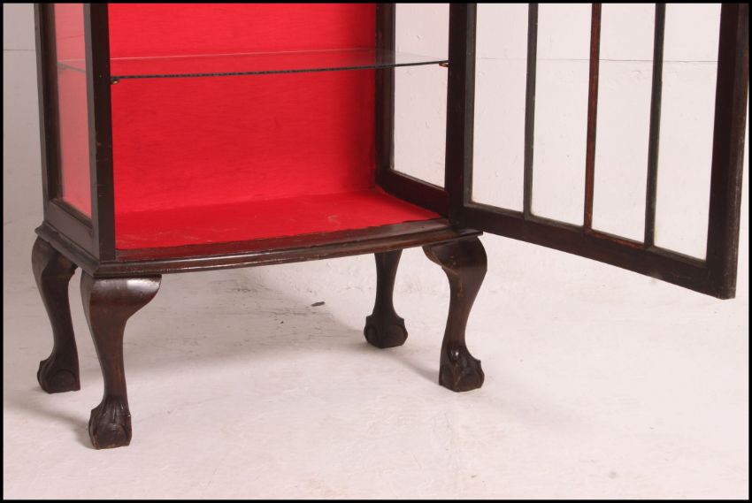 A 1930's Queen Anne revival mahogany display cabinet having full length glazed door raised on cabriole legs with lined interior. Measures: 126cm x 57cm x 31cm.