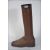 A vintage early 20th century stick stand in the form of a gentlemans riding boot of brown leather. Weight and lined to stand firm. Measures: 55cms long.