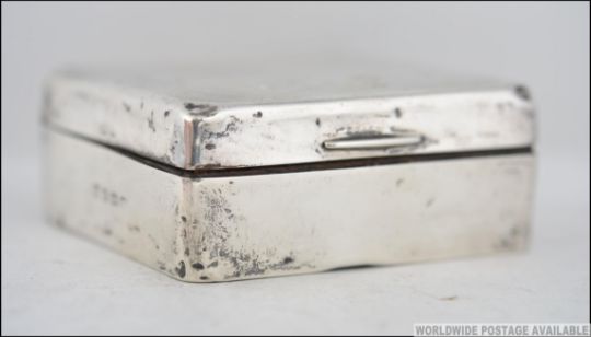 A silver hallmarked table top cigarette case by William Neale & Sons Ltd, Birmingham ( early 20th century circa 1930) having wooden lining. Total weight 195.7g. Measures: 9cms wide.