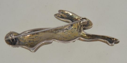 A silver and marcasite brooch in the form of a rabbit - hare in the manner of watership down. Pin verso. Weight approx 8g