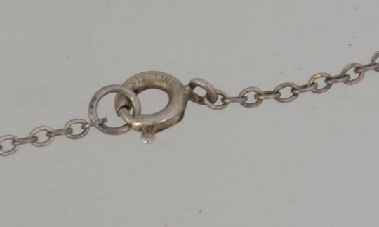 A vintage Art Deco style silver and green agate with marcasite pendant on chain. Marked 925. Chain 42cms / Pendant 4cms