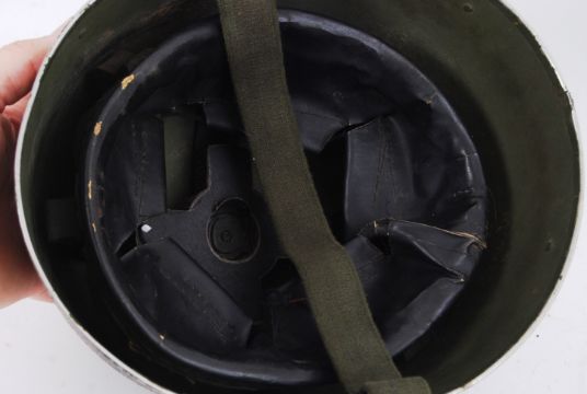 PARATROOPER HELMET: An original vintage Paratrooper / Tankers military uniform helmet in green.