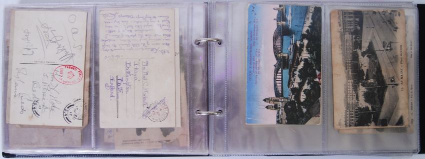 POSTCARDS: WWI Postcards. Collection of (131) typical cards from 'The front': Bomb damage, street scenes, Patriotic, Sentimental all have British Army/Field Post Office postmarks and censor marks. Interesting messages.