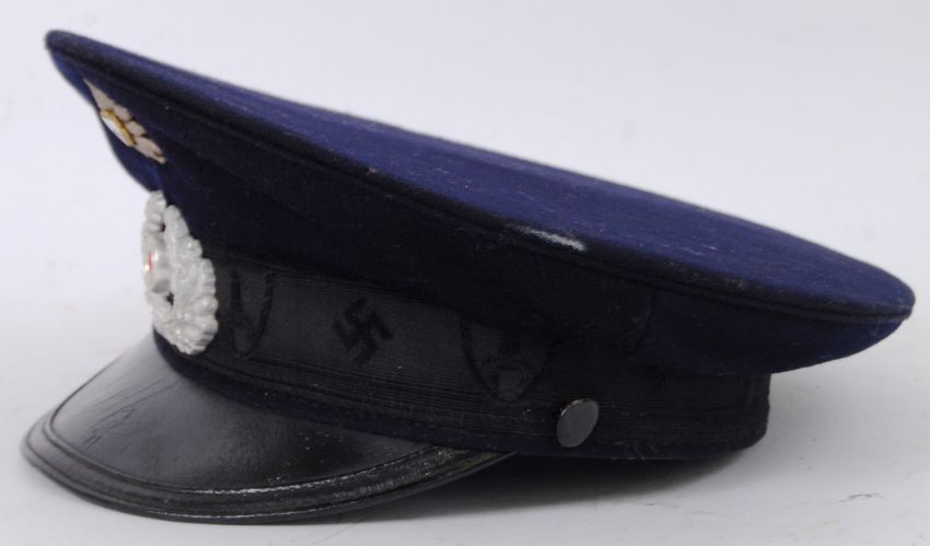 REICHSKRIEGERBUND: An original scarce Reichskriegerbund uniform hat, with unusual enamel Eidelweiss badge atop. Rare. With detailed banding.