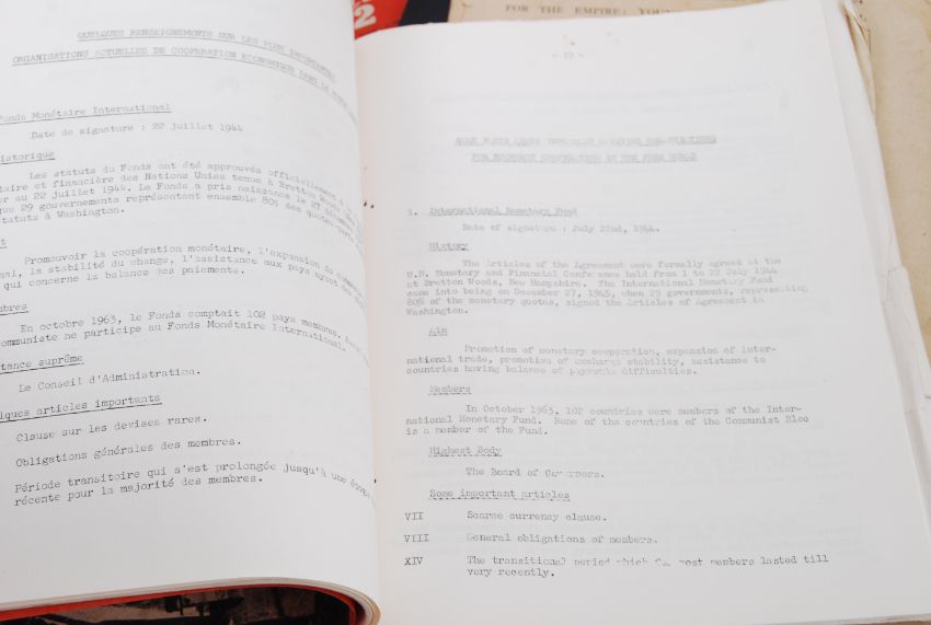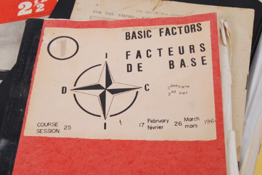 COLD WAR: A fabulous collection of Cold War and related paperwork / ephemera to include a French 1964 NATO Defense College ' Basic Factors' book (appears to be typed lecture notes, or similar), Civil Defence Instructions, various notes, and a folder containing various pamphlets and related materials including ' Modern War ' ' Fallout Protection ' and a large foldout map.