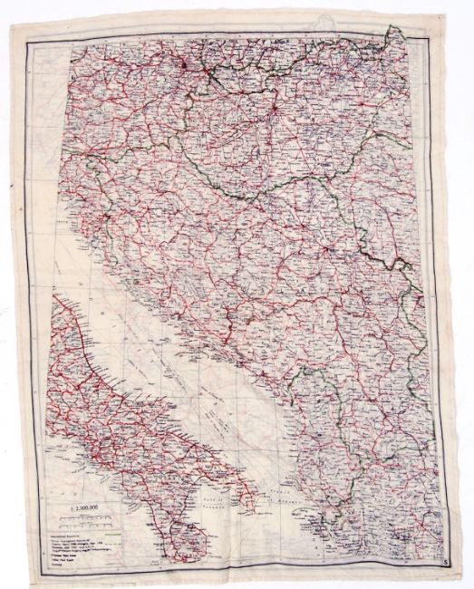 MAP: An original WWII era Second World War silk map, detailing parts of Europe such as Yugoslavia and surrounds. 60cm x 45cm approx.