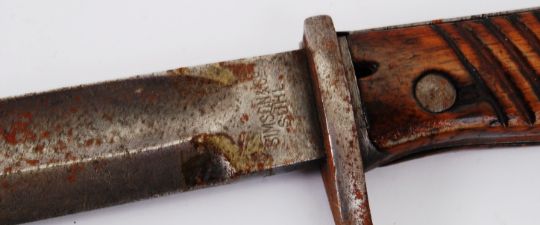 BAYONET: A First World War WWI 1916 pattern German Simson & Co. Suhl bayonet, with wooden grips. No scabbard. 50cm long