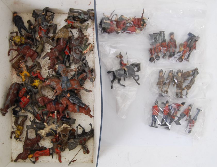LEAD SOLDIERS: A collection of assorted vintage lead figures and soldiers to include Britains, Johillco, infantry, animals etc