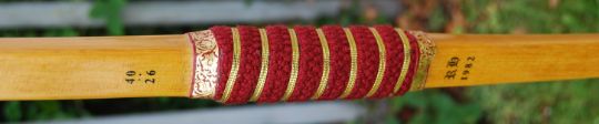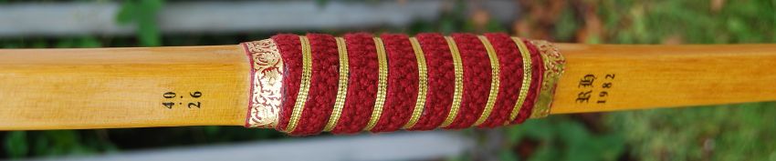 LONGBOW: An original Richard Head medieval style longbow. With cloth wrapped grip with leather end pieces. 177cm tall. (porter not included)