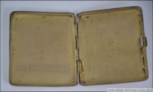 A silver hallmarked cigarette case with monograms and dates for JDS 1906 - KLS 1920. Hallmarks for Stokes & Ireland Ltd -William Henry Stokes & Arthur George Ireland, Chester 1908. Total weight 75.7g L9cm
