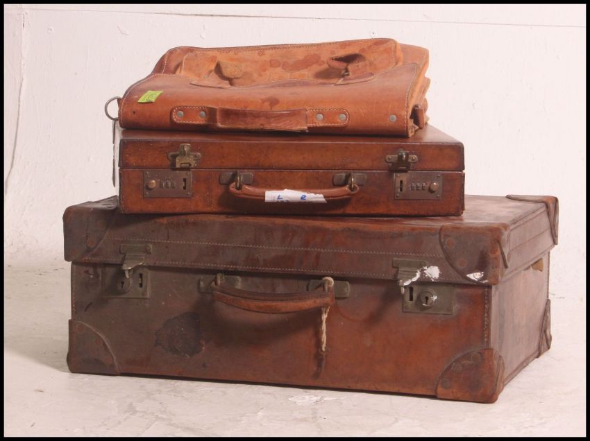 A stunning Swaine Adeney Brigg leather suitcase along with another also with a leather gents attache case