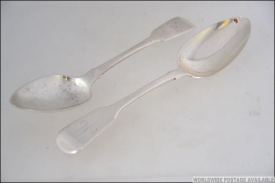 2 19th century Georgian silver hallmarked desert spoons one by George Turner & Thomas William Biddell, London 1821. Together with another by John Kinselagh of Cork Island but with London mark for 1830. Weight 40g L18cm