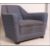 A vintage post war Art Deco club armchair of angular form raised on block feet with blue upholstered fabric. Measures: 72cms high x 86cms wide x 94cms deep.