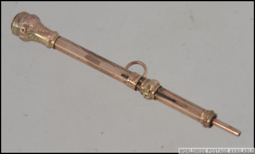 A 9ct gold 19th century propelling pencil with rococo chase decoration. Total weight 3.4g