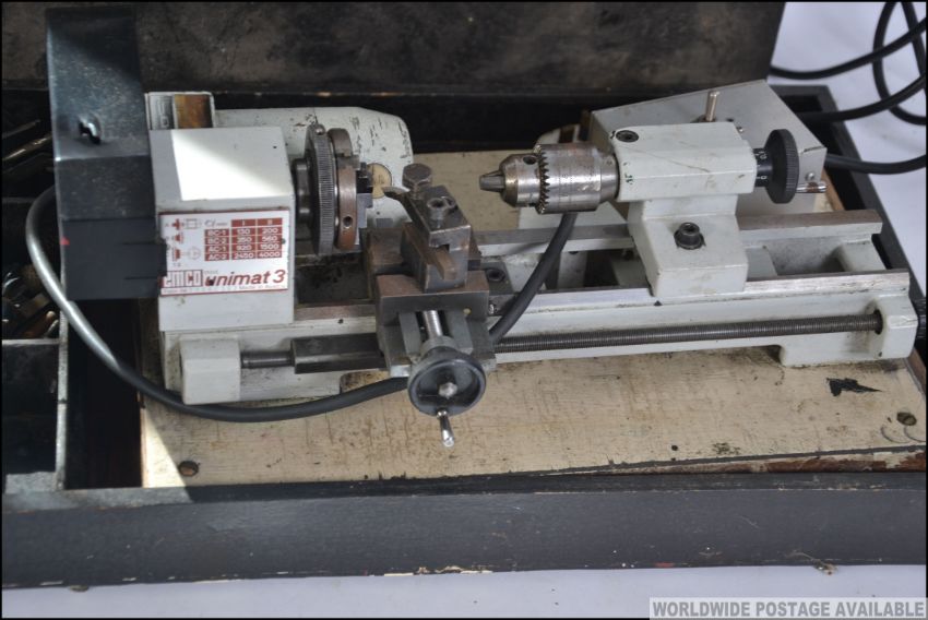 A vintage cased 20th century hobbiest lathe with attachments etc please see images. Measures: 40cms wide