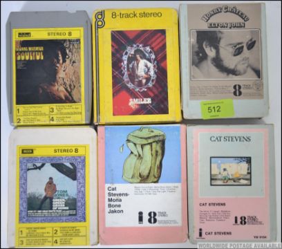 A small collection of retro 8 track cassette tapes to include Elaton John Cat Stevens, Tom Jones, Dione Warwick etc