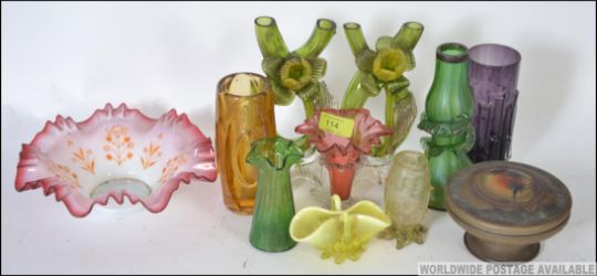 A collection of 19th and 20th century glasswares with some in the manner of Loetz, Whitefriars etc please see images. Measures: 19cms high.