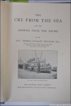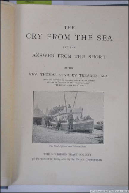 THE CRY FROM THE SEA AND THE ANSWER FROM THE SHORE.TREANOR, REV. THOMAS STANLEY. Published by Religious Tract Society. Original blue cloth binding with black, red and gilt title to front and spine. 256pp plus illustrations.