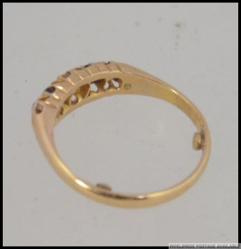 An 18ct gold sapphire and diamond 5 stone ring being hallmarked to the shank. The diamonds approx 18pnts, sapphires approx 16pnts. Total weight 3.2g / Size M.5