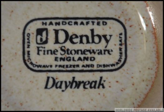 A part dinner and tea service by Denby to include dinner plates, side plates, cups, saucers etc in the Daybreak pattern along with some other Denby pieces